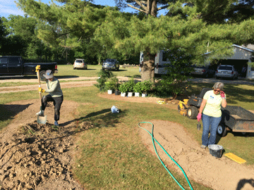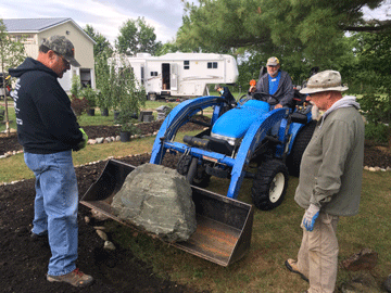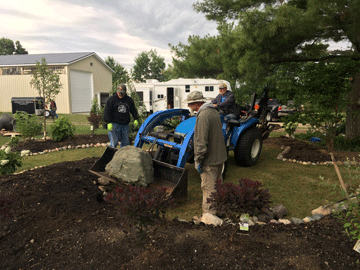 Even our neighbors got involved. People who love the Lord and are willing to give their time and enegery to help with this project. Yes, that’s another BIG rock, one of many that were brought in.